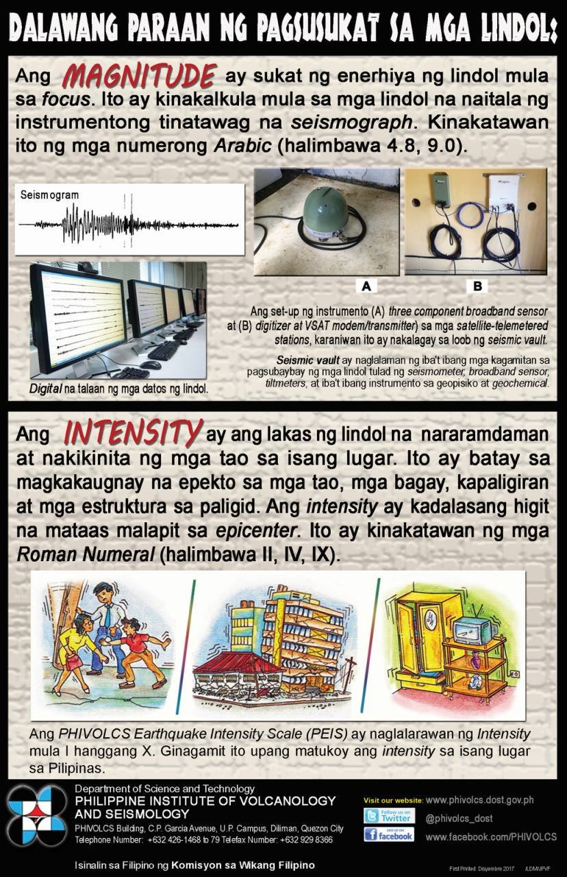 10 Phivolcs Earthquake Intensity Scale from i1.wp.com Phivolcs cites seismic scale specifically developed for the philippine setting, the different geography of each country and othe. The phivolcs earthquake intensity scale (peis) is a seismic scale used and developed by the philippine institute of volcanology and seismology (phivolcs) to measure the intensity of an earthquake. Now using data updates from phivolcs 2 jul 12:50: Diliman, quezon city philippines 1101. This table gives mmis that are typically observed at locations near the epicenter of the earthquake. Less than the vibration of a passing truck. Hypocenter depth recalculated from 23.0 to 6.0 km (from 14.3 to 3.7 mi). Apr 22, 2009 · the tremor was given an intensity rating of ii on the philvolcs earthquake intensity scale, which meant that it would only be felt by a few individuals at rest indoors;